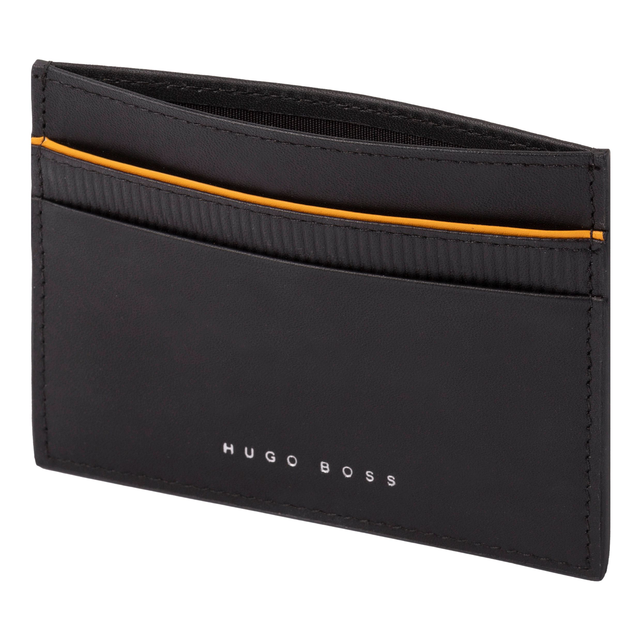 This contemporary and punchy card holder is made from a soft leather with yellow accent piping . The Hugo Boss logo is embossed to the front of the product in silver.